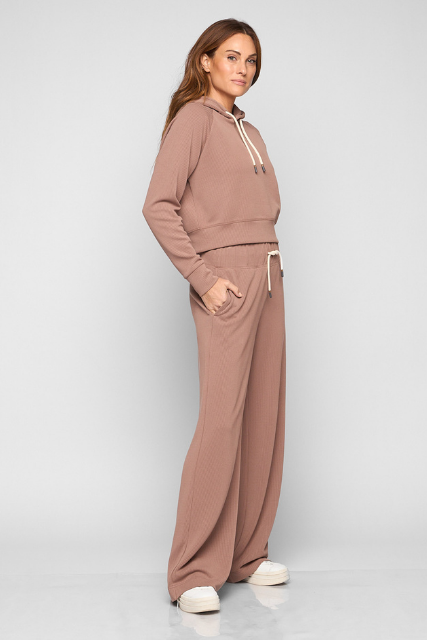 The Later On Ribbed – Women’s High-Waist Pant in mocha offers a chic, elevated take on everyday comfort. Featuring an adjustable waistband with drawcord, on-seam pockets with mesh lining, and fluid drape, these pants pair effortlessly with sneakers or layered looks for versatile style.