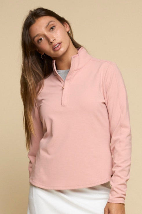 Elevated and versatile, the Legend - Women’s Quarter Zip in rose combines polished design with everyday performance. Made from sleek, high-stretch fabric, this active essential is perfect for layering — whether you’re on the court, traveling, or keeping it casual.