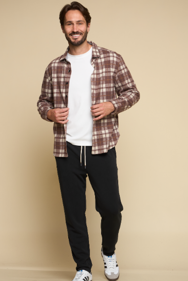 The Nazare Ranch - Men’s Button Front Long Sleeve Flannel in anise is a fall favorite crafted from brushed knit flannel with irresistible softness and just the right amount of stretch. Designed for layering or wearing on its own, it combines casual polish with functional details, making it a versatile essential for cooler weather.