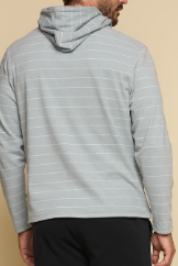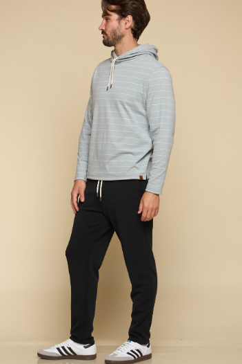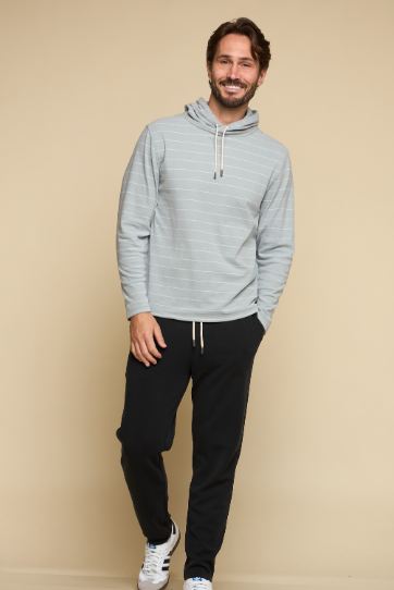 The Balboa - Men’s Hoodie in limestone delivers effortless comfort with a modern edge. Crafted in brushed knit fabric with horizontal stripe detail, it features an open bottom with side split and drawcord hood, making it an easy layering piece for year-round wear.