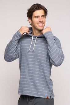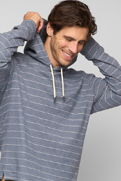 The Balboa - Men’s Hoodie in indigo night delivers effortless comfort with a modern edge. Crafted in brushed knit fabric with horizontal stripe detail, it features an open bottom with side split and drawcord hood, making it an easy layering piece for year-round wear.