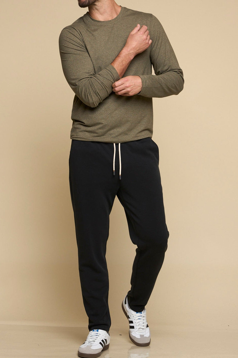 Designed for effortless movement, the Later On - Men’s E-Waist Pant in jet black delivers polished comfort with elastic waist and drawcord, covered zipper pockets, and straight-leg silhouette. With a soft drape and sleek fit, these pants are a versatile essential for every day.