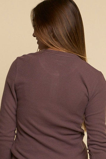 The PCH - Women’s Long Sleeve Henley in anise is crafted from our signature super soft mini waffle texture fabric, making it the perfect layering piece for cool fall days. With a flattering forward seam and curved hem, it’s a refined take on a casual staple.