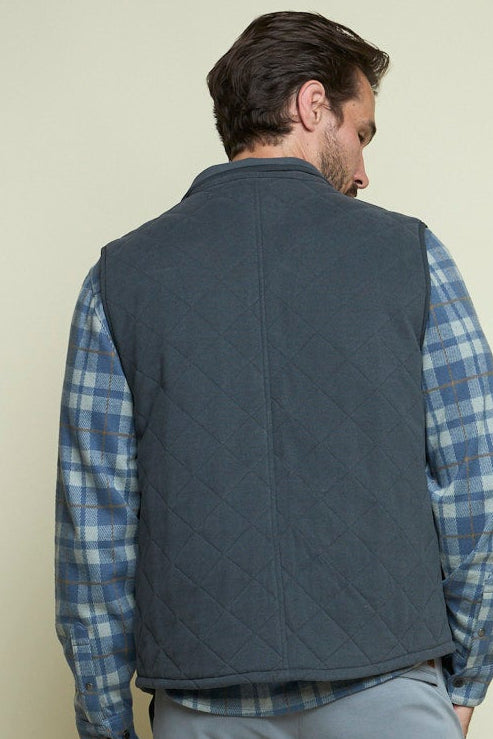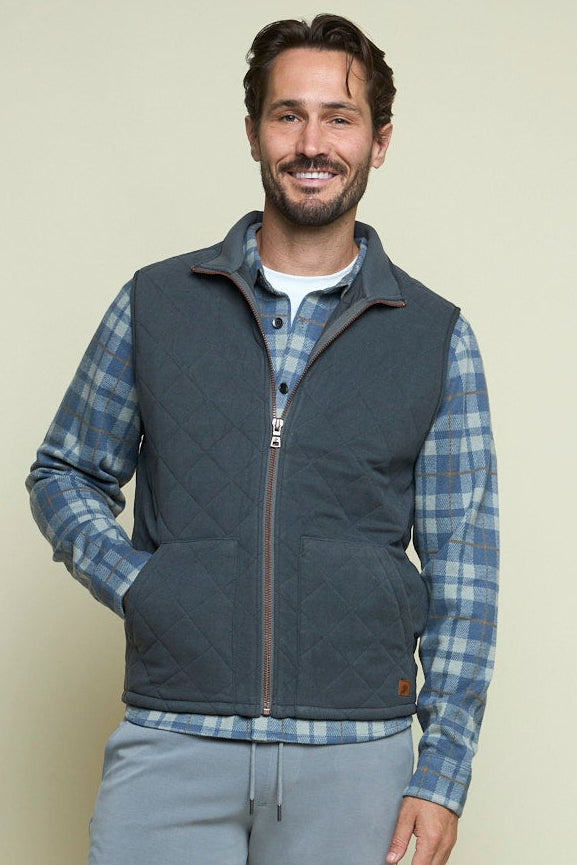 The Maverick - Men’s Full Zip Vest in smoke is a top-selling Fundamental Coast favorite, designed for layering and easy travel. With classic diamond quilting, patch pockets, and a packable structure, this vest combines comfort and versatility with refined style.