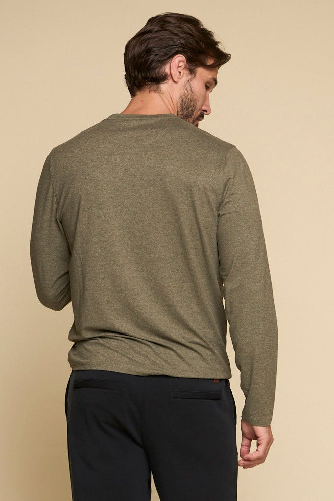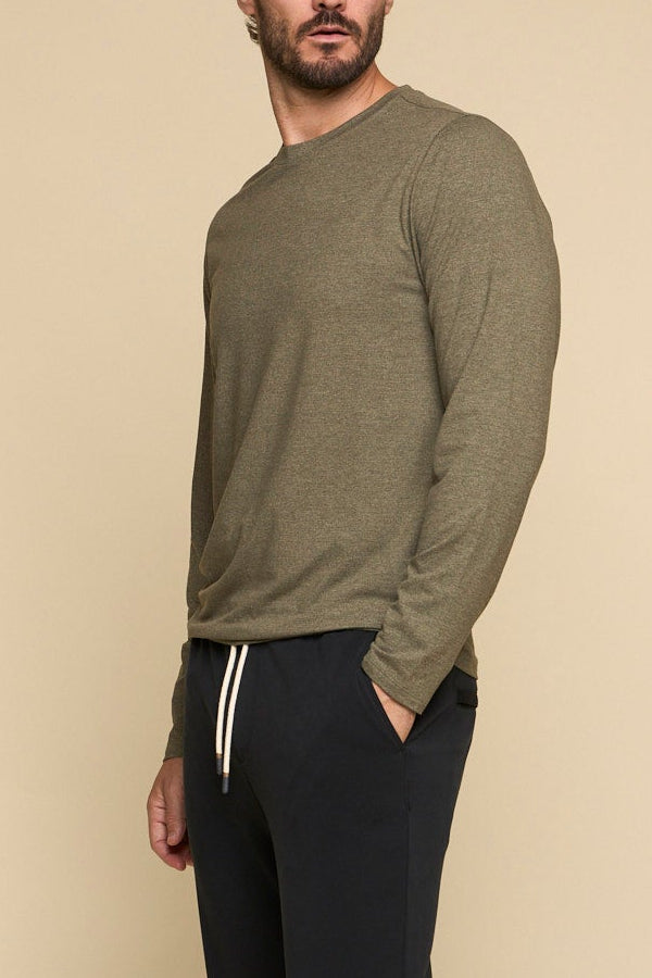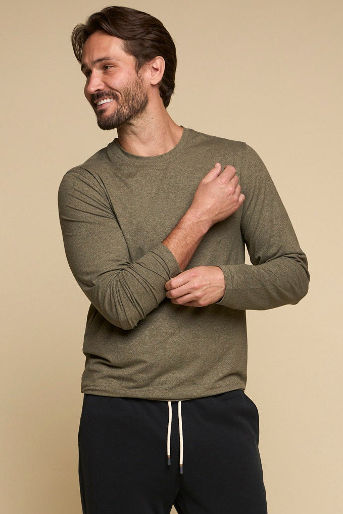 The North Shore - Men’s Long Sleeve Crew in fatigue is a refined basic crafted from our heathered fabric with a brushed finish for irresistible softness and elevated comfort. Lightweight yet warm, this versatile crew is designed for layering and year-round wear, making it a timeless essential for your everyday rotation.