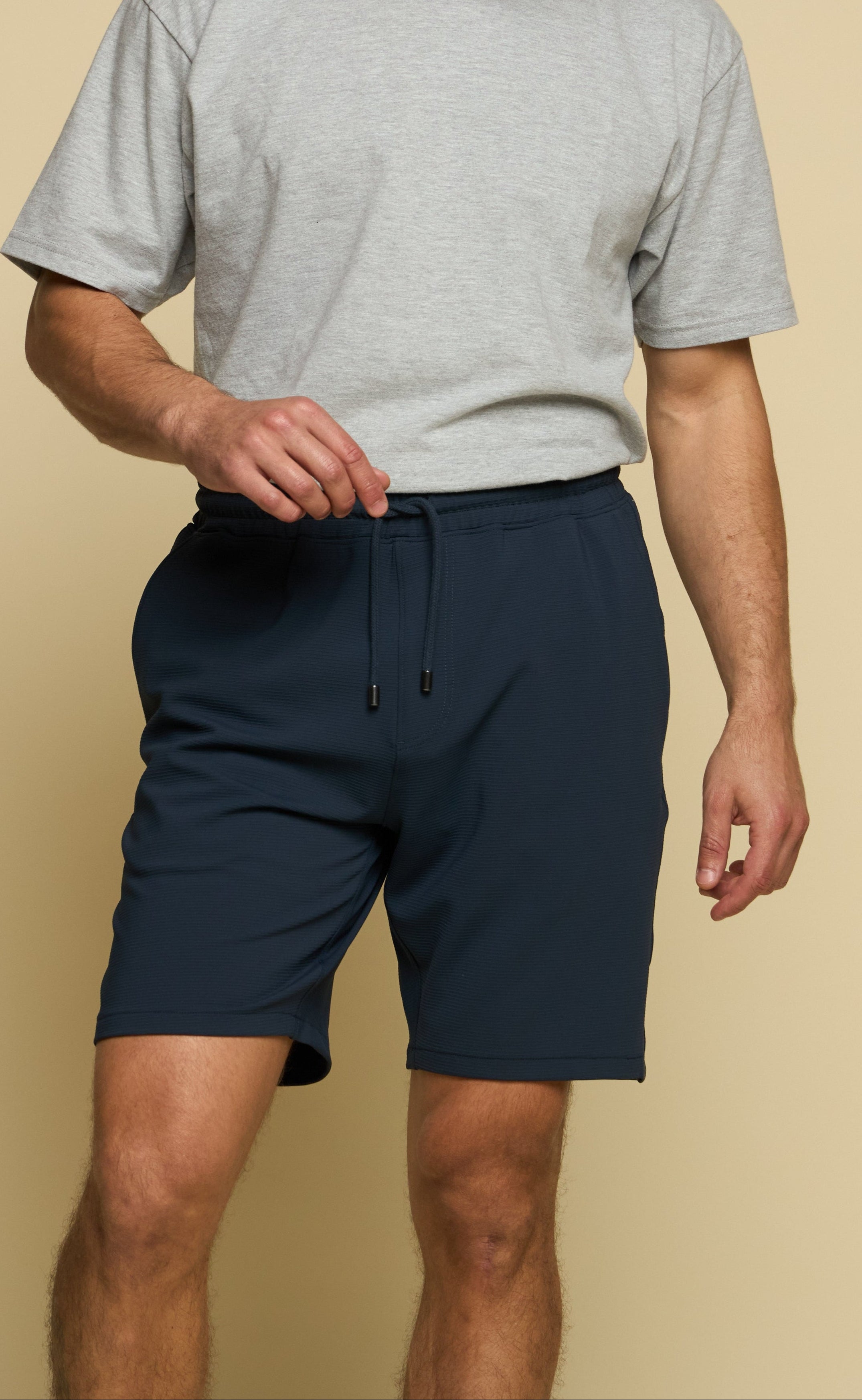 Elevated comfort meets everyday performance. The Legend – Men's E-Waist Short in indigo night is designed for versatility, combining a tailored look with all-day ease. Crafted from a lightweight, moisture-wicking fabric blend with 4-way stretch, these shorts move seamlessly with you — from workouts to weekends. The elastic waistband with drawcord ensures a personalized fit, while the sleek, minimalist design keeps your look sharp and effortless.